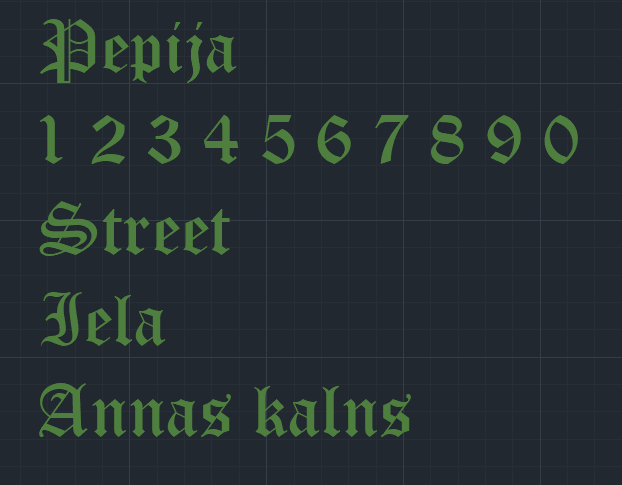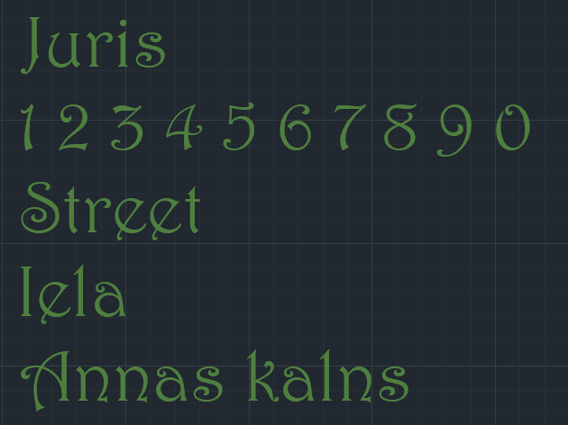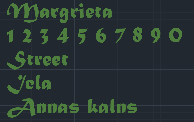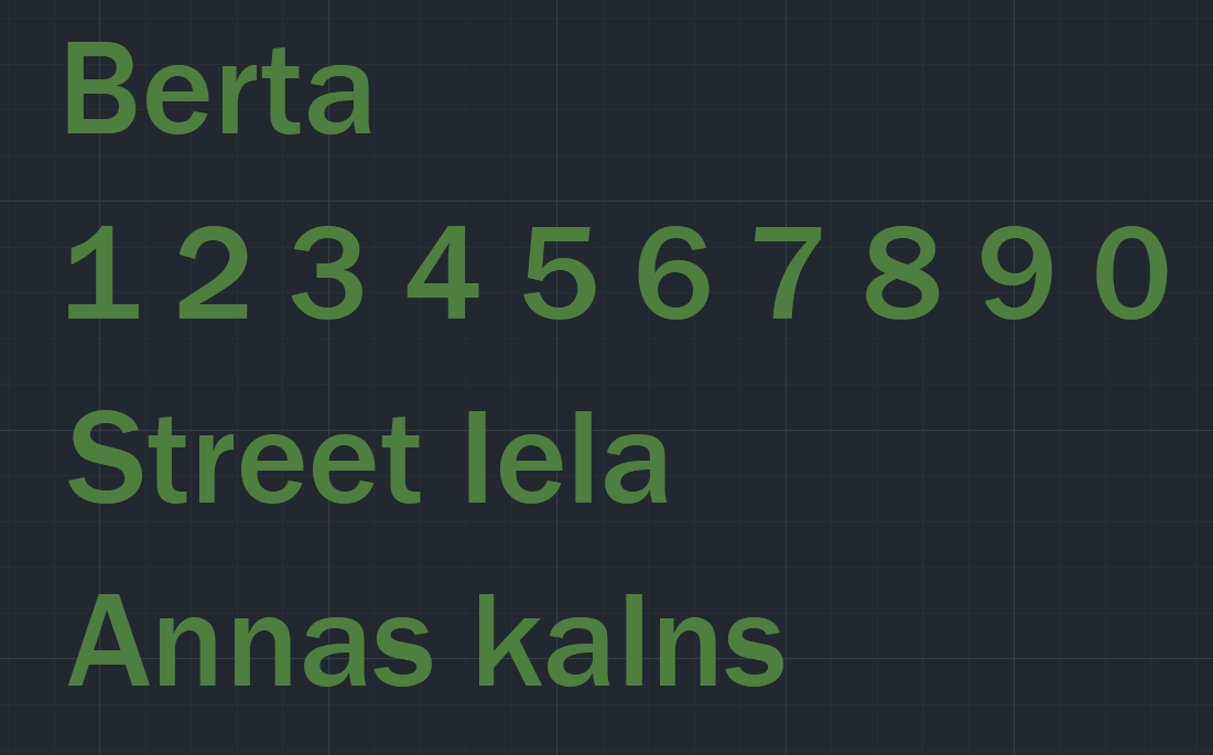 Fonts ar taisnākām līnijām - segvārds Berta: