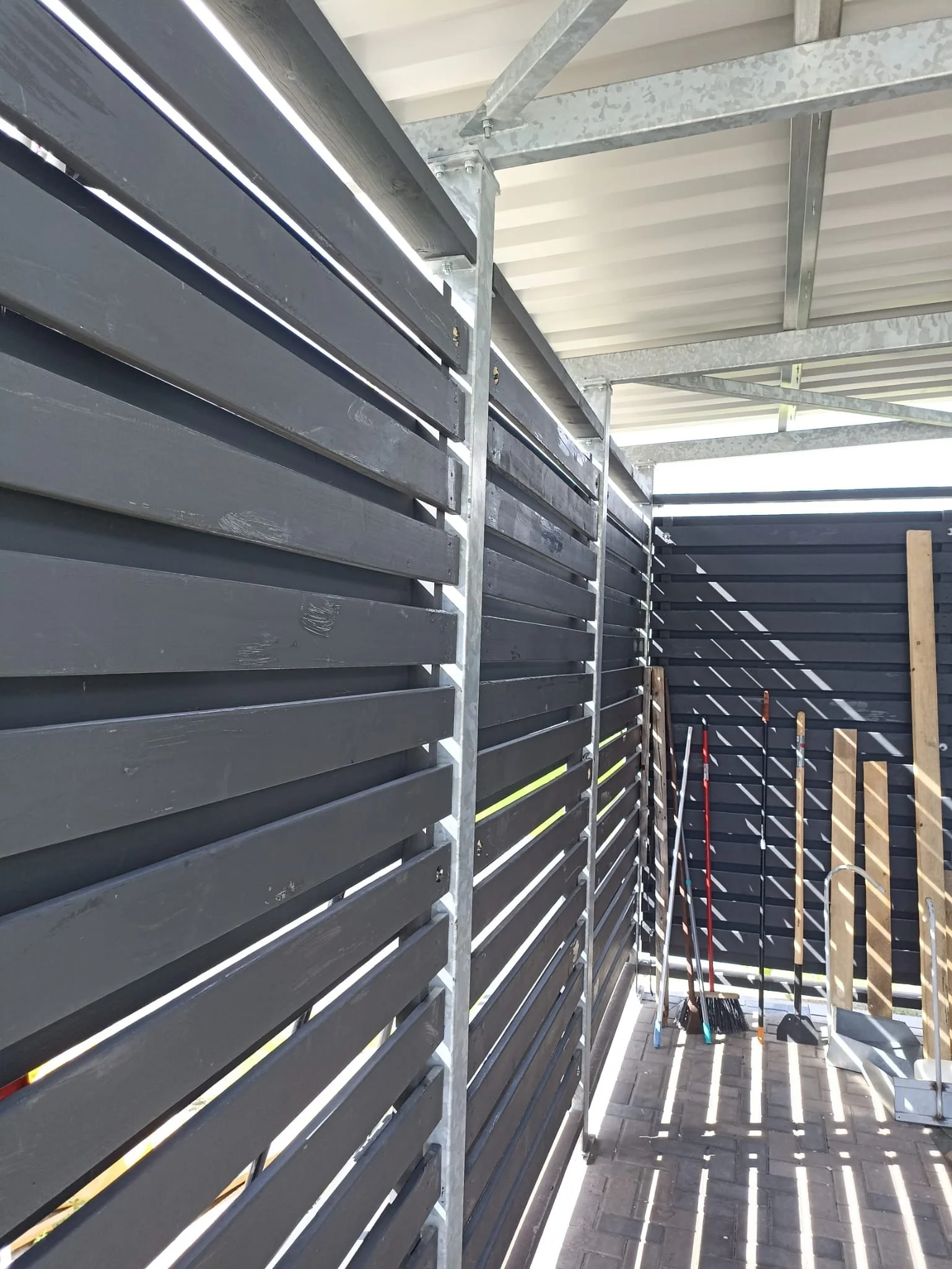 Teicams risinājums atkritumu konteineru izvietošanai māju pagalmos, degvielas stacijās vai kā saimniecības lietu novietne, vai arī garažiņa dārza traktoram, motociklam, laivai.
